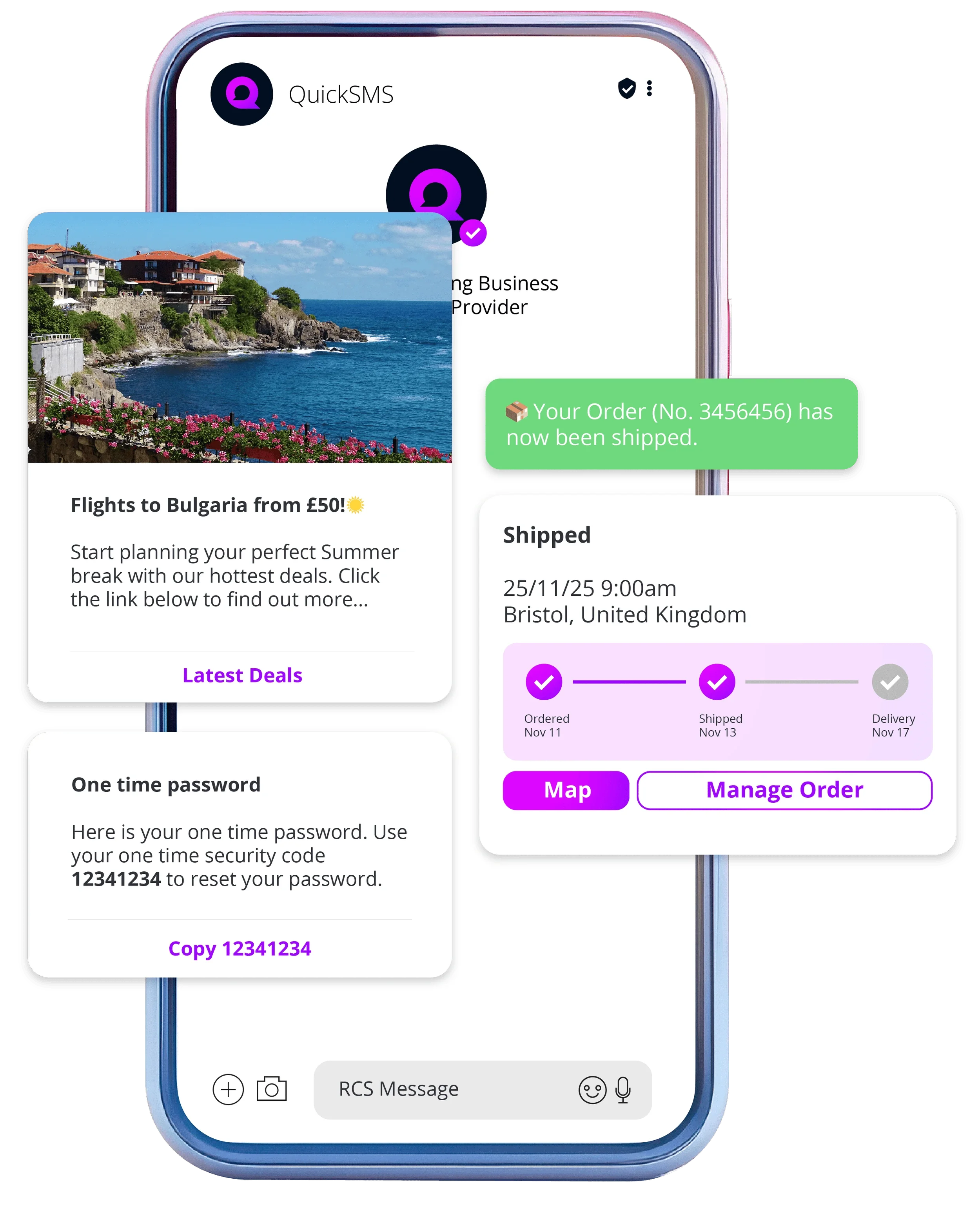 Deliver rich, secure messaging through SMS, RCS, and WhatsApp, all from a UK-hosted platform with powerful APIs for fast integration. QuickSMS helps you launch bulk campaigns, automate alerts, and connect across every major mobile channel.