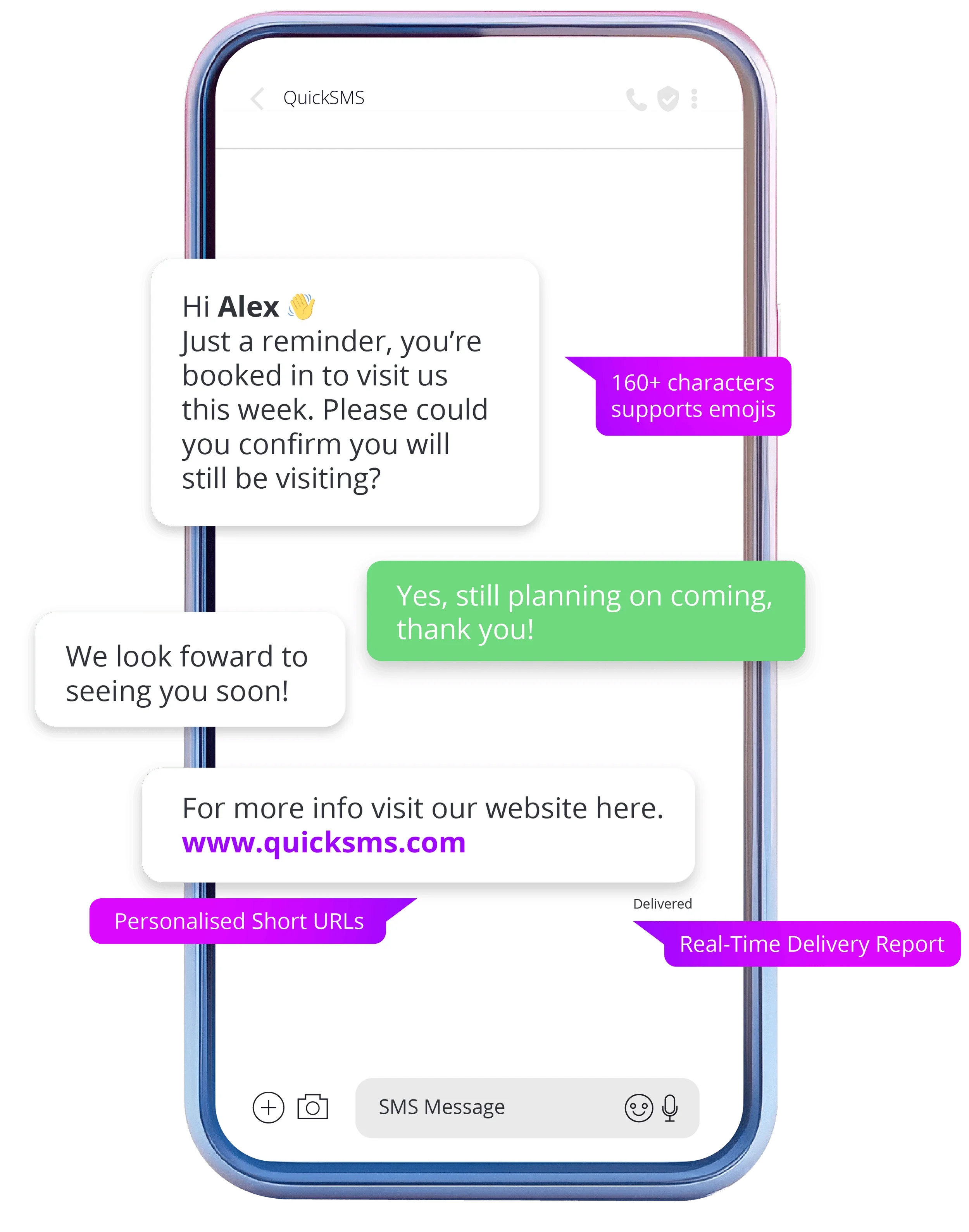 With QuickSMS, you can send and receive text messages using the UK’s most secure business messaging platform.