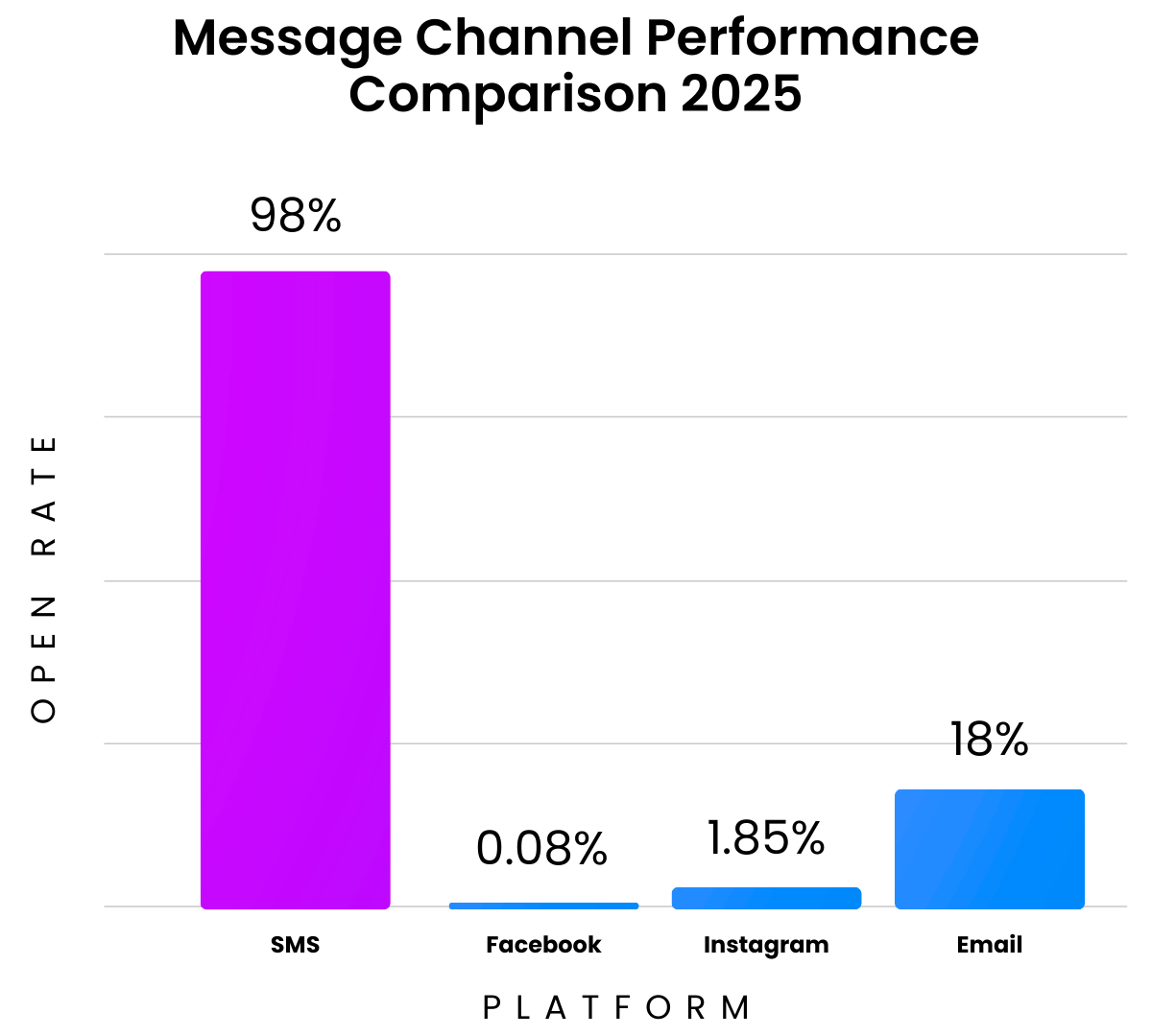 Measurable ROI: Tracking social media's actual contribution to revenue remains difficult. Did that Instagram post drive yesterday's sale? Maybe. SMS click-through rates and conversion tracking provide definitive answers.