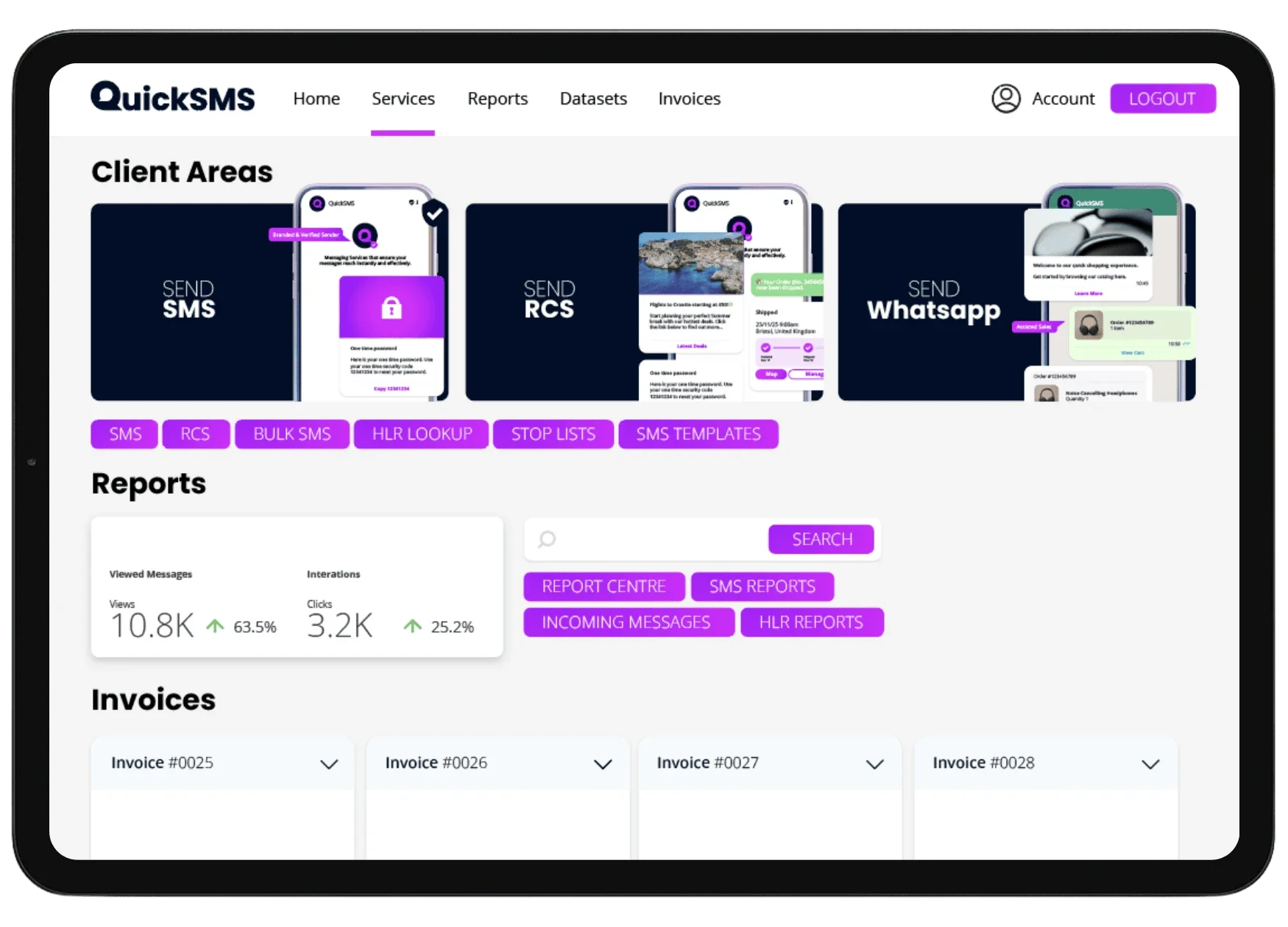 Manage all your messaging activity in one place. View campaign performance, download invoices, and register your RCS agents.